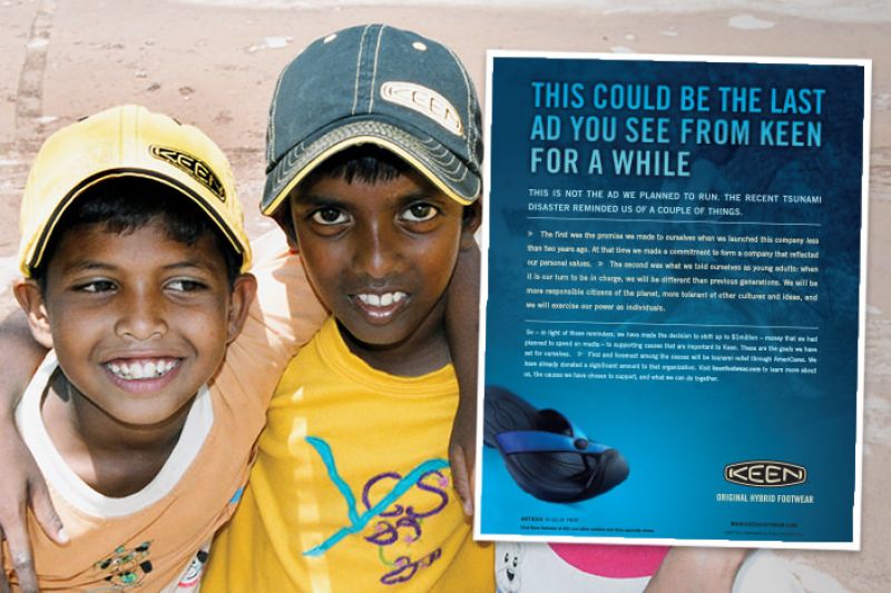 Nach dem Erdbeben und dem Tsunami in Tohoku, Japan, spendete KEEN 13.500 Paar Schuhe für die Tsunami-Hilfe und das Team des Earth Camp-Projekts von KEEN Japan half bei den Aufräumarbeiten im Erdbebengebiet. Ausserdem ging ein Teil aller Verkäufe von KEEN Japan an einen KEEN Hilfsfonds, der umgerechnet 145.000 US-Dollar für fünf gemeinnützige Organisationen sammelte.